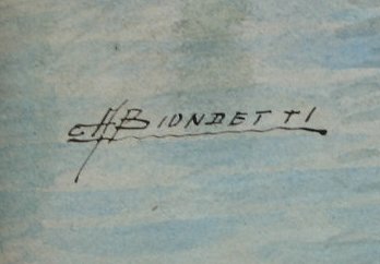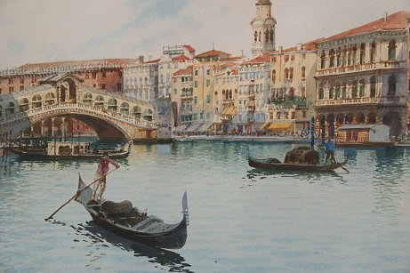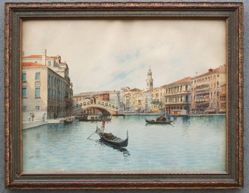 BIONDETTI, C.H., (Italian, 20th C): Venetian Canal, W/C, 13 1/2'' x 18 1/2'', signed lower left, encased in worn gold frame, 15'' x 20''.