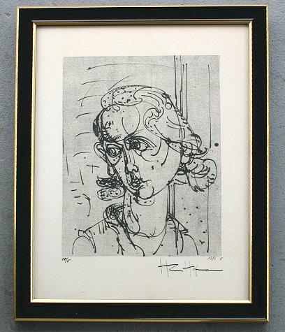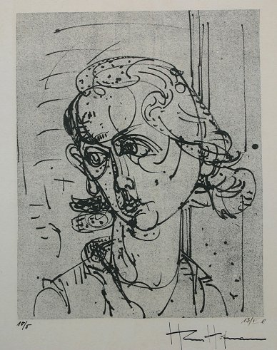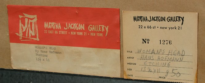HOFMANN, Hans, (German, 1880-1966): ''Woman's Head'', Etching, 13 1/2'' x 11'', with margins 18 1/2'' x 15'', signed in ink lower right, numbered 5 of 10 lower left, Martha Jackson Gallery label affixed verso, encased in fine contemporary black lacquer and gold frame with minor wear, 21 1/2'' x 17 1/2''. From the Beatrice Altman collection.