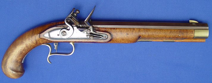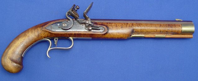 REPRODUCTION KENTUCKY FLINTLOCK PISTOL SIGNED G. KING: 16'' overall, 10'' barrel. Sold as is.