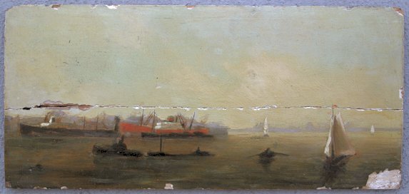 AMERICAN SCHOOL O/B RIVER SCENE: 6'' x 13 1/2'', unframed, no visible signature. Sold as is. Est. $300/500**