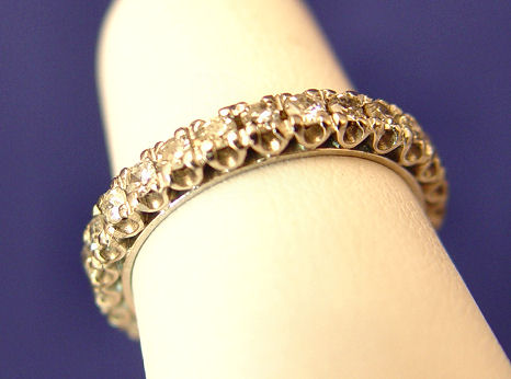 DIAMOND ETERNITY BAND: Approx. 1.87 ctw of small round brilliant cut stones, set in 14k white gold, size 5.75, 3.5 grams. Sold at no reserve with current appraisal, retail replacement cost $2825.00.