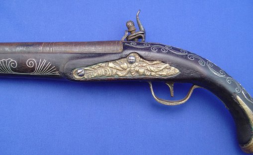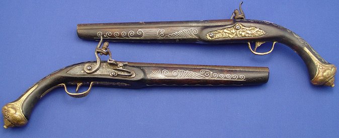 PR TRADING PISTOLS WITH SILVER INLAY: 17 1/2'' overall, 10 1/2'' barrel. Sold as is.