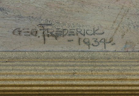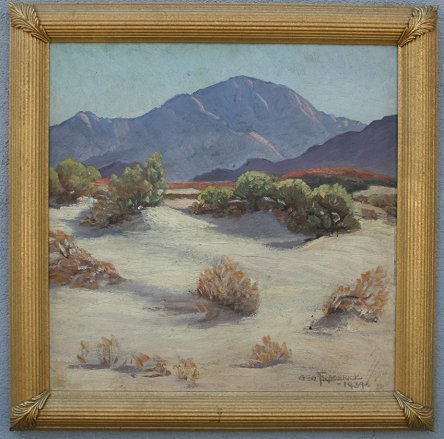 FREDERICK, George, (American, 1889-?): Southwestern landscape, O/M, 21 1/2'' x 21 1/2'', signed lower right and dated 1934, contemporary frame, 26'' x 26''.