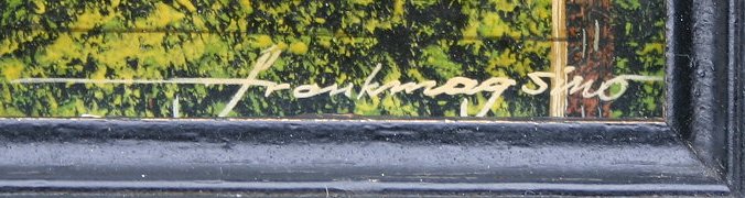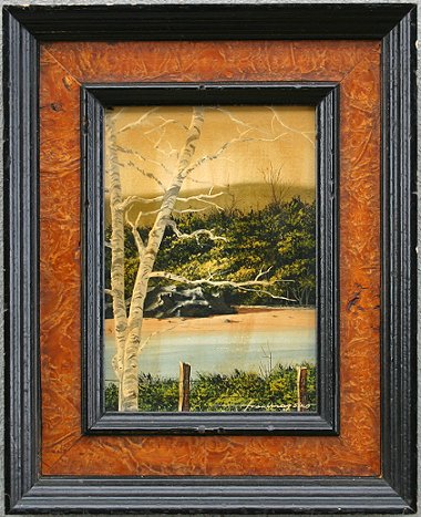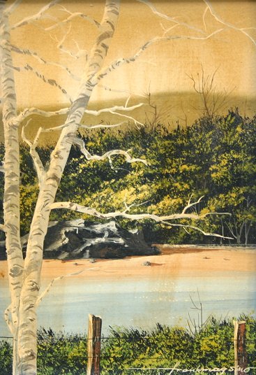MAGSINO, Frank, (American, 1937-): Birch by river, O/Masonite, 7'' x 5'', signed lower right, custom frame, 10 1/2'' x 8 1/2'' Est. $400/600**