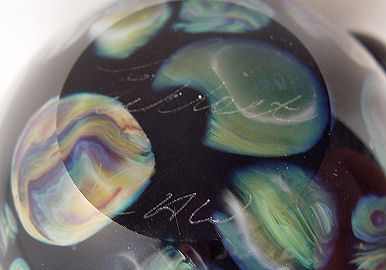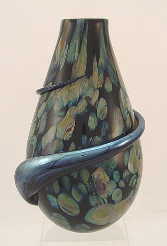 EICHOLT ART GLASS VASE: Applied iridescent coil on layered millifiori type glass, signed in script, 10''h.