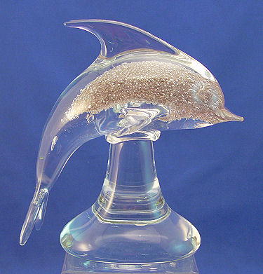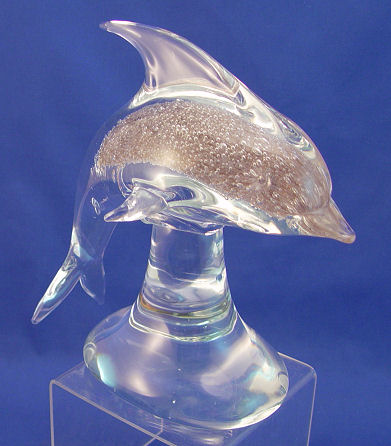 MURANO ART GLASS DOLPHIN: Bubble interior, unsigned, 9 1/4'' x 9 1/2''.