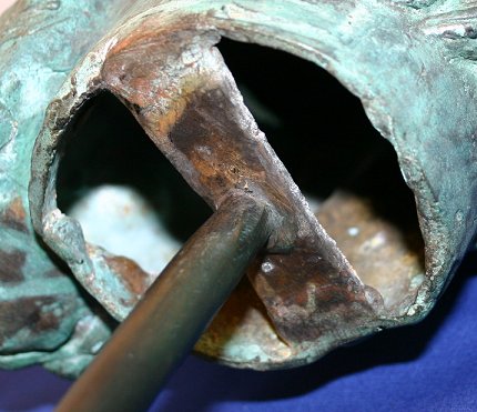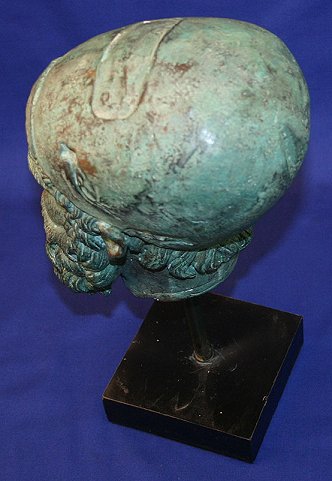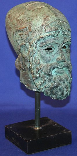 BRONZE PORTRAIT CASTING: Patinated bronze head of Greek scholar, permanently mounted on display stand. 13''h. overall, 7 1/2'' deep.