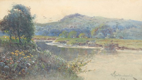 MACDONALD, J.Tim (British, 19th/20th C): River Landscape, W/C, 6'' x 11'', signed lower right, dated '77, contemporary frame, 17 1/2'' x 21 1/2''.