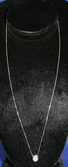 40PT DIAMOND SLIDE PENDANT: Contemporary creation of 14k white gold, bezel set diamond of approx. 40pts, 22'' box chain marked Italy PT950. Est. $500/700**