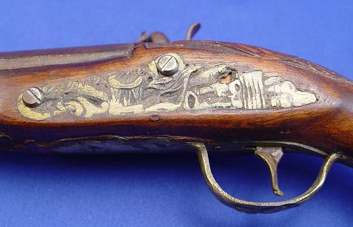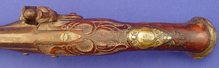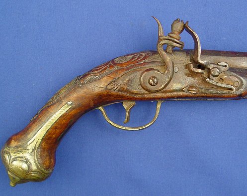 SCOTTISH LOWLAND TYPE FLINTLOCK: 15'' overall, 8 1/2'', barrel, Euro repro. Sold as is.