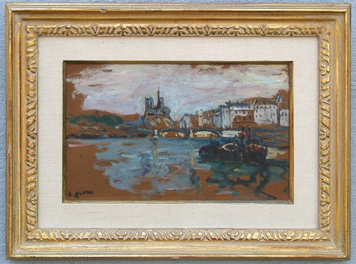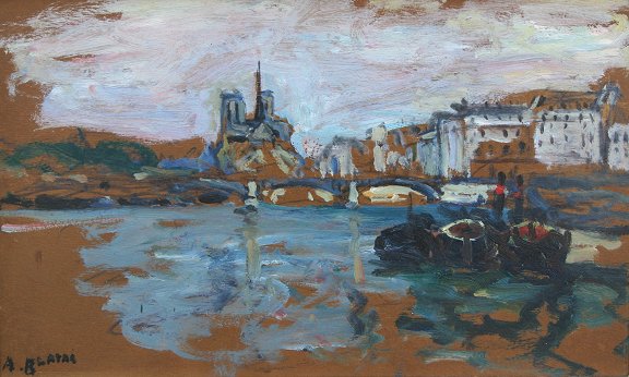 BLATAS, Arbit, (Lithuanian, 1908-1999): European scene depicting a city on a river, O/Masonite, 8'' x 13 1/2'', signed lower left, encased in a fine contemporary frame with wear, 15 1/2'' x 21''. From the Beatrice Altman collection.