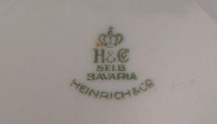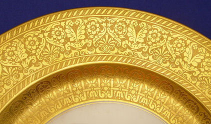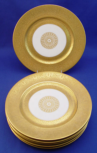 SET OF 6 HEINRICH BAVARIAN SERVICE PLATES: Wide gold border, 10 7/8'' dia.