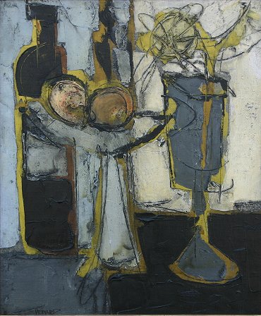 VENARD, Claude, (French, 1913-1987): Still life with bottles and a comport, O/C, 21 1/2'' x 18'', signed lower left, encased in contemporary gilt frame with wear, 28 1/4'' x 35''. From the Beatrice Altman collection.