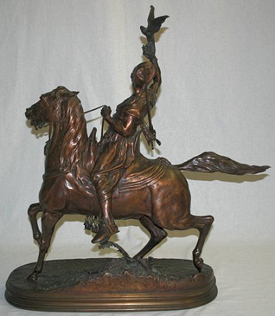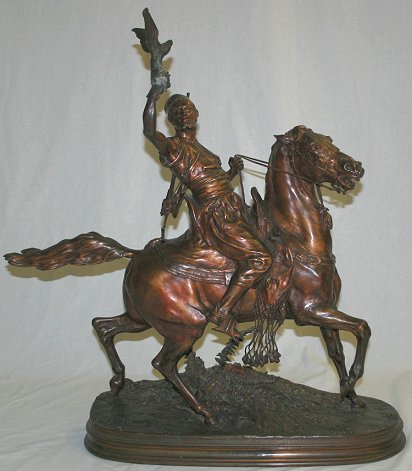 MENE, P.J., (French, 1820-1879): ''Fauconnier'', Patinated Bronze, 30 ½'' h., impressed signature, incised dedication, ''Hommage a Mr Louis Bunand par son personnel, November 1863''.
