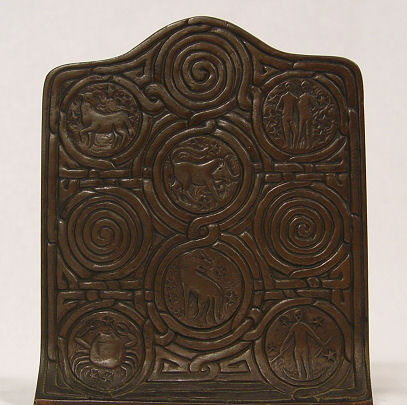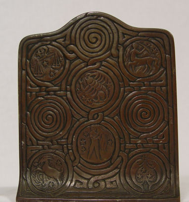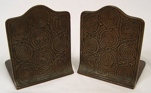TIFFANY ZODIAC BOOKENDS: Bronze, incised ''Tiffany Studios New York 1091'', 6'' h. x 4 3/8''.