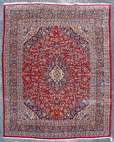 FINE KASHAN CARPET: Deep red tone, approx. 9' x 12'.