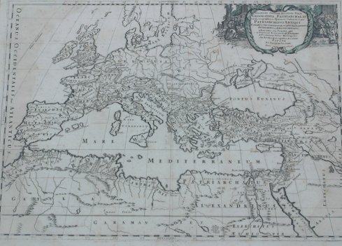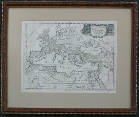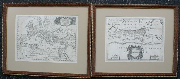 PAIR NICOLAS SANSON MAPS: From Sanson's Tabulae Geographicae, framed, and accompanied by an appraisal from C. Dickens, Fine, Rare and Collectible Books. Size in frames; 24 1/2'' x 30''. Sold as is.