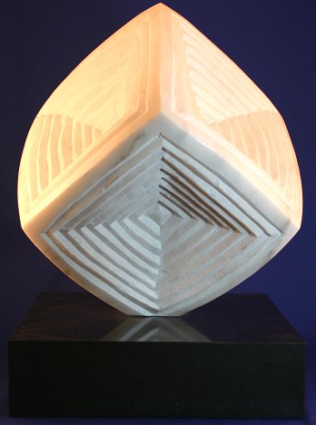 NIIZUMA, Minoru, (Japanese, 1930-1998): ''Floating Flower'', Iranian Onyx, 10'' x 10'' x 10'', reportedly a maquette of a piece in the Hirshorn, acquired directly from the artist. Bears label affixed under polished marble plinth, Gimpel & Weitzenhoffer LTD, Madison Ave, NY, dated 1972. From the Beatrice Altman Collection. Est. $4000/6000**