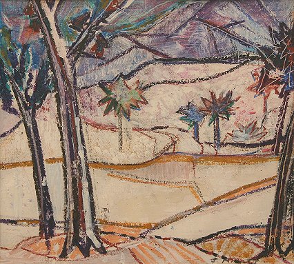 MILTS, Fridrichs (Fridrihs), (Latvian, 1906-1993): Landscape, Gouache/Pastel/Oil Pencil 10''x 11'', signed, framed 17 1/4'' x 18''.