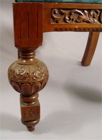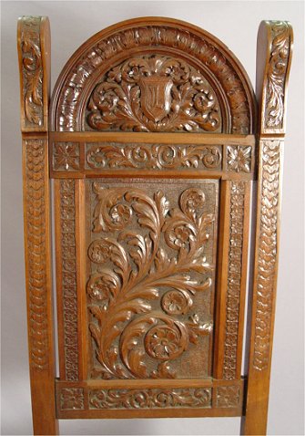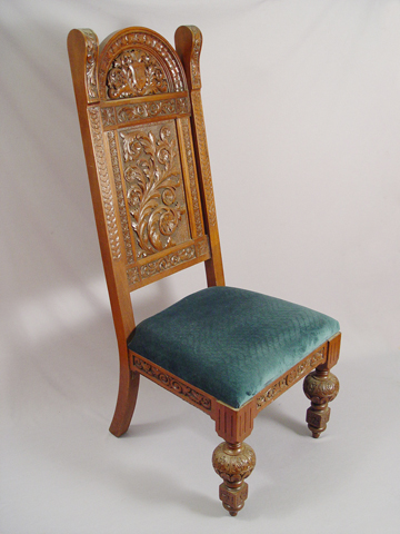 CARVED MAHOGANY JACOBEAN CHAIR: Ca. early 20th C. Fully carved arched top rail, bulbous feet. 53''h. x 22'' x 18 3/4'' wide.