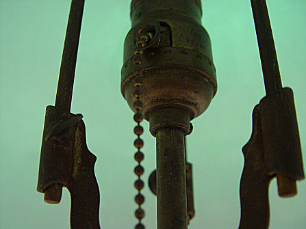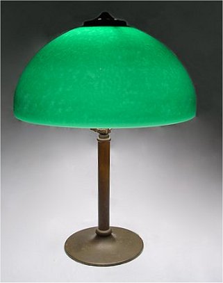 PITTSBURGH GREEN SHADE TABLE LAMP: Domed shade with chipped ice texture on cased emerald green. The shade is 216'' dia., the lamp is 20''h. overall.