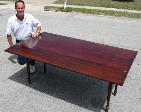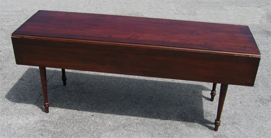 HARVEST TYPE MAHOGANY DROP LEAF TABLE: 6 feet long, on turned peg legs. 23''w. with both leaves extended it is 41''w.