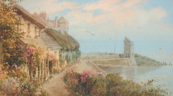 SWEET, Walter Henry, (British, 1889-1949): ''Mars Hill, Lynmouth'', Seaside Cottage, W/C, 7'' x 12 1/2'', signed W.H. Sweet, titled in pencil verso, newer frame, 12 1/2'' x 17 1/2''. Scattered spotting/foxing, some mild toning.