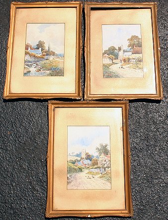 TYNDALE, F.H., (British, 19/20th C.): 3 Piece W/C Lot, 9 1/2'' x 6 1/2'', signed Landscapes in matching frames with wear, 18'' x 12 1/2''.