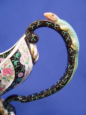 HEREND BLACK DYNASTY FINE HUNGARIAN PORCELAIN PITCHER: Exquisite attention to detail. Note the lizard on the handle, 13 1/4''h. x 12''w. overall. Blue Herend mark. Est. $1500/1800**