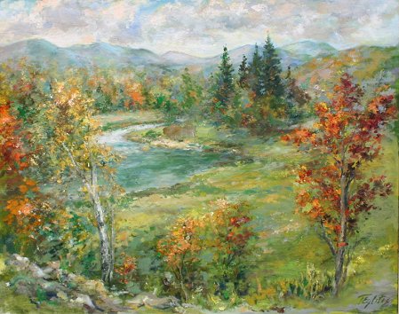 EGLITIS, Fred, (Latvian, 1912-1996): Landscape with mountains, O/B, 24'' x 30'', overall 22 1/2'' x 38 1/2''. From the estate of Fred Eglitis.