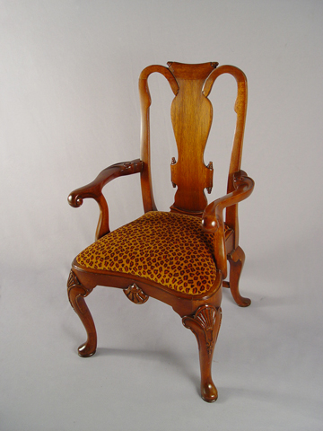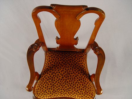 MAHOGANY QUEEN ANN CHILD'S CHAIR WITH LEOPARD VELVET SEAT: Fine historic reproduction from Chelsea House, 26''h. x 14''w.