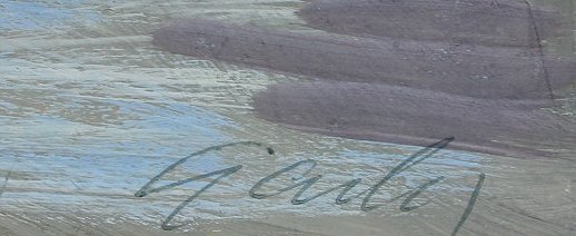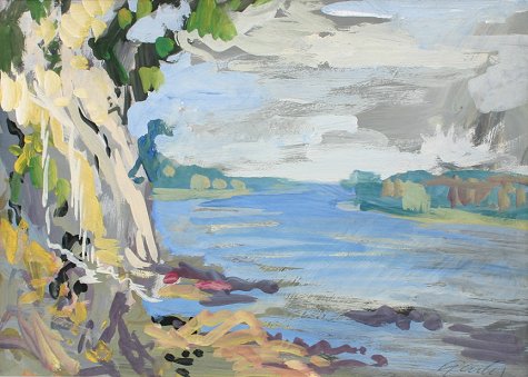 GAILIS, Janis, (Latvian, 1903-1975): River Scene(2 sided), Gouache/Masonite, 9'' x 12'', signed, framed 13'' x 15''. From the estate of Fred Eglitis.