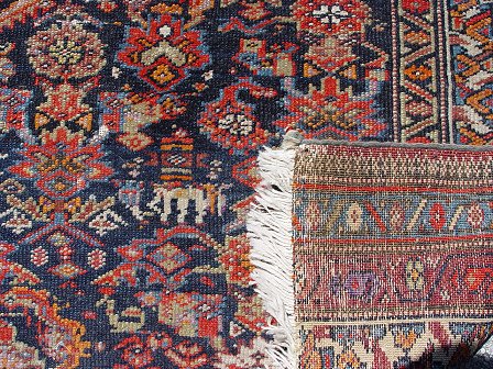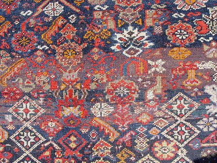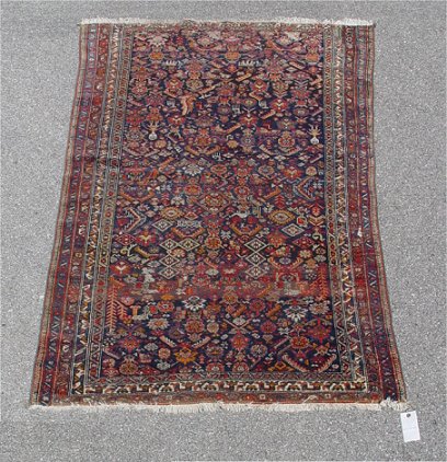 SEMI-ANTIQUE PERSIAN PICTORIAL RUG: Approx. 3'9'' x 5'9''. Dark ground with figures and animals.