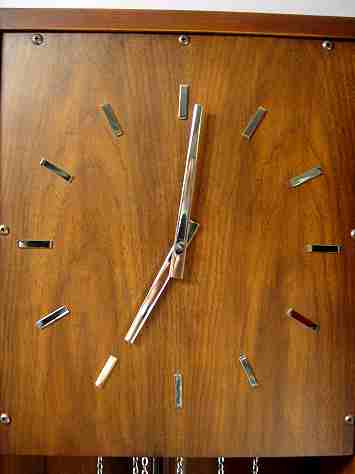 SLIGH TREND MODERNE STYLE GRANDFATHER CLOCK: 72'' tall, 14 1/8'' w. x 9'' d. Serial numbers impressed on the back are 8093218 with the number 150 stamped as well. Sold with the instruction booklet.
