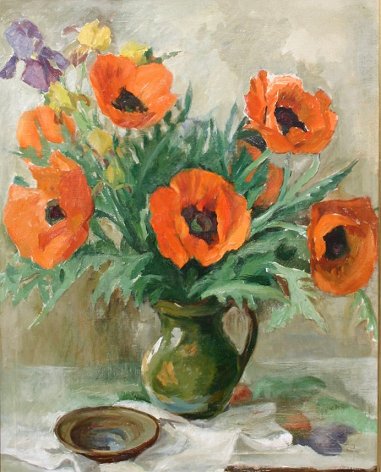 LATVIAN? O/C OF POPPIES: 30'' x 24'', unsigned, overall 35 1/2'' x 29''. From the estate of Fred Eglitis.
