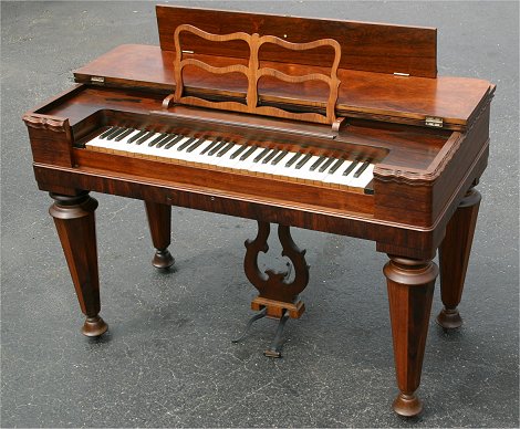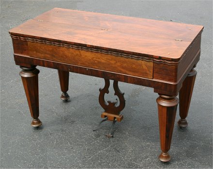 19TH C CHILD & BISHOP OF CLEVELAND OHIO SPINET MELODIAN: Rosewood cabinet on heavy piano legs. 32 1/4'' x 47 1/2 x 23 1/2.
