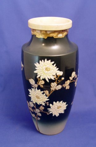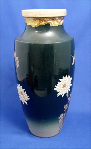 ARTIST SIGNED JAPANESE SATSUMA VASE: Chrysanthemum and moth decor, 12 1/4''h.