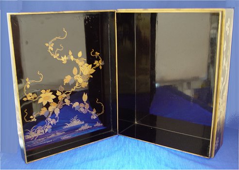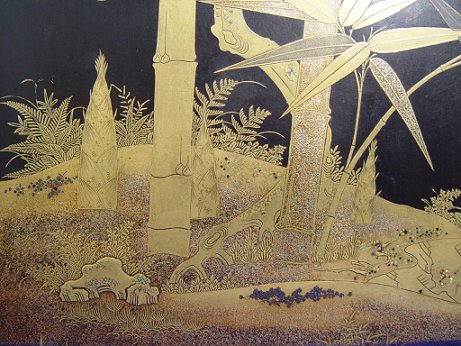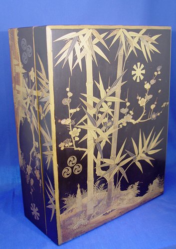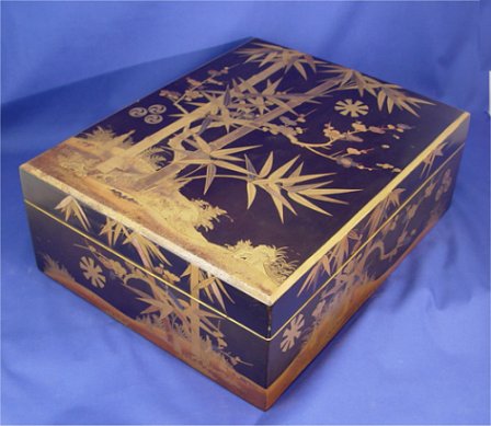 JAPANESE LACQUER WARE BOX: Gold bamboo design, 5 1/2''h. 12'' x 16''.