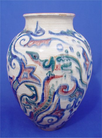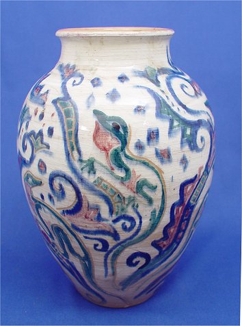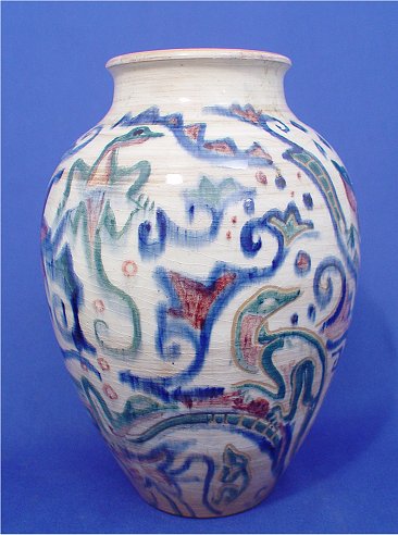SHEARWATER ART POTTERY VASE: From Ocean Springs, Mississippi and the Anderson family. The lizard motif decoration is attributed to Walter Inglis Anderson. Impressed ''Shearwater'', 9 3/4''h.