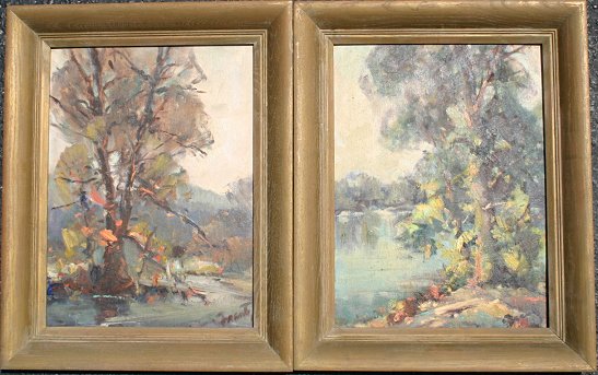 FRANTZ, Dorothy, (American, 20th C.): Pair of Landscapes, O/CB's, 16'' x 12'', signed, wood frames, 20'' x 16''. Frantz was a noted Brown County Indiana, artist and instructor.