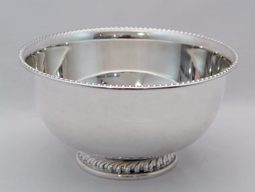 STERLING SILVER CENTER BOWL: Gadroon edging along the pedestal base and the border. Stamped ''Sterling 604'', the makers name is worn and illegible. 9'' dia., 4 3/4''h. Approx. 502 grams or 16.14 oz. No monogram.