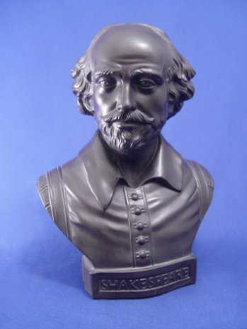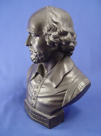 WEDGWOOD BLACK BASALT BUST OF SHAKESPEARE: Impressed ''9A64 Made in England Wedgwood'', 10''h.