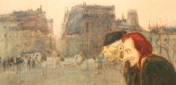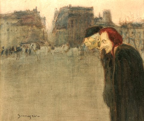 JOAQUIN SUNYER Y MIRO, (Spanish, 1875-1956): Figures on a Paris Street, W/C, 10 1/4'' x 12 3/4'', signed Sunyer, framede 18'' x 19 1/2''. Est. $6000/8000**