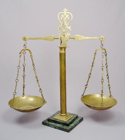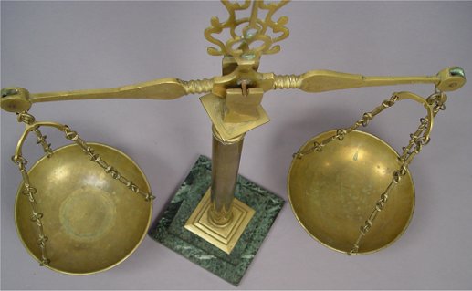 DECORATIVE BRASS AND MARBLE BALANCE SCALE