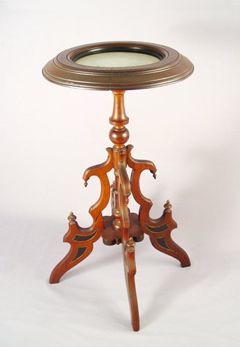 WALNUT VICTORIAN FERN STAND: Marble insert, incise carved and shaped pedestal with minor restoration. 31''h. x 16''.