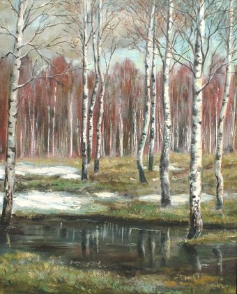 EGLITIS, Fred, (Latvian, 1912-1996): Birch trees, O/B, 21 1/4'' x 17 1/2'', overall 26'' x 21 3/4''. From the estate of Fred Eglitis.