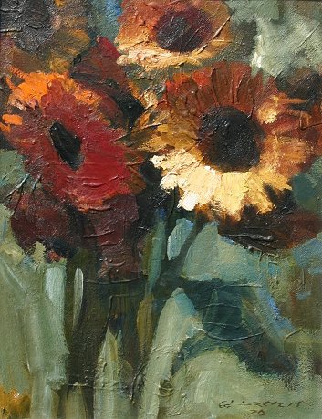DZENIS, Edouard, (Latvian, 20th C.): Sunflowers, O/Masonite, 29 1/4'' x 23'', overall 33 1/2'' x 27 1/4''. From the estate of Fred Eglitis.