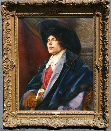 ANDREIS, Alex de, (Belgian, 1871-1939): Cavalier Messenger, O/C, 32'' x 26'', signed and dated 1920, old John Levy Galleries label verso, exceptional period gilded gesso frame, with minor wear. Some minor cracklure, has been under glass; very clean.