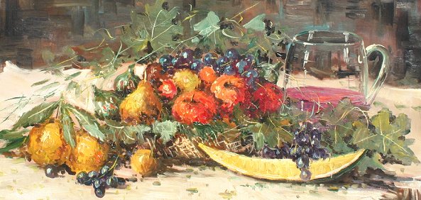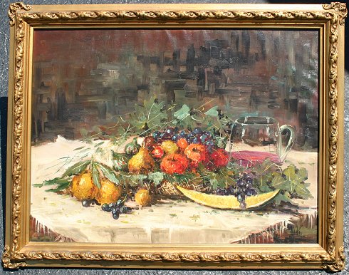 DEVITY, Antonio, (Italian, 20th C): Floral Still Life, O/C, 24'' x 32'', signed lower right, studio stamp verso, encased in attractive gilt frame, 29'' x 37''. Probably could be restretched and cleaned, minute fleck upper right, indent in lower right quadrant and upper left quadrant. This is an early example of Devity's work, and the best we have seen or offered.