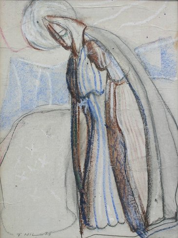MILTS, Fridrichs (Fridrihs), (Latvian, 1906-1993): Study of a Female Saint, Gouache/Pastel/Oil Pencil, 11 1/2'' x 8 1/2'', signed, framed 17 1/4 x 13''. From the estate of Fred Eglitis.